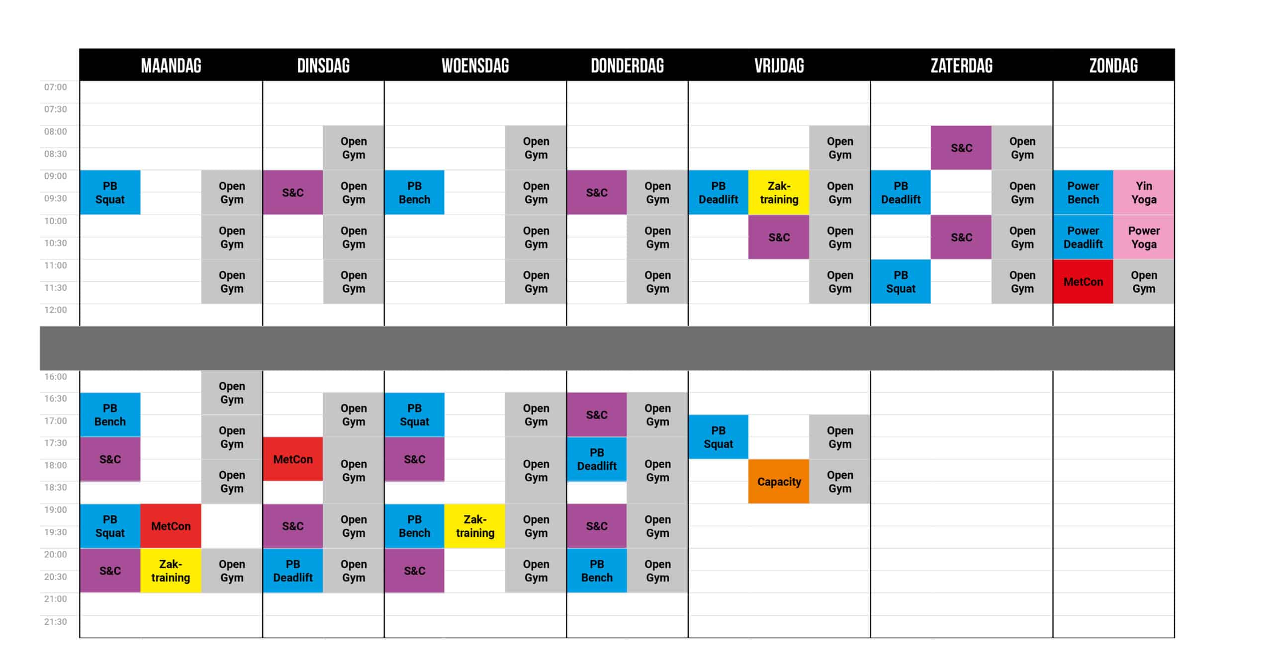 Tijden voor personal training, feestdagen en fysiotherapie kunnen afwijken.